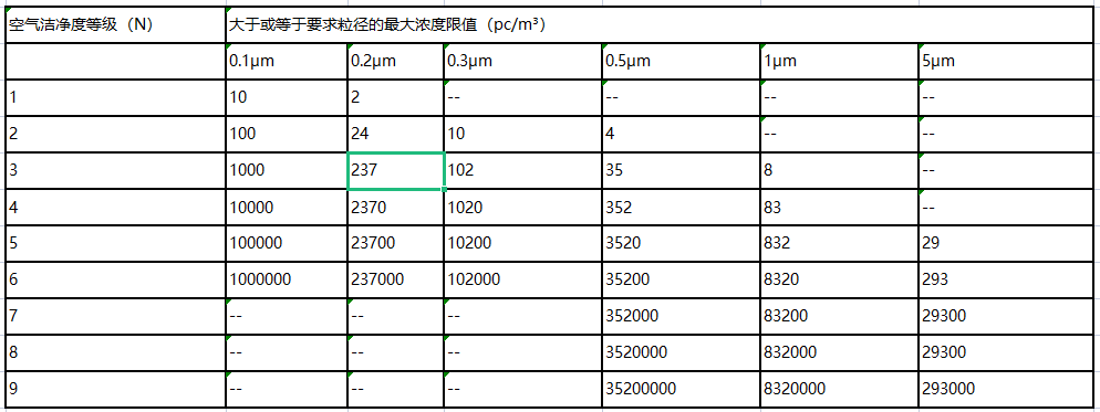 5 、 電子工業(yè)潔凈室空氣潔凈度等級(jí)表    :
